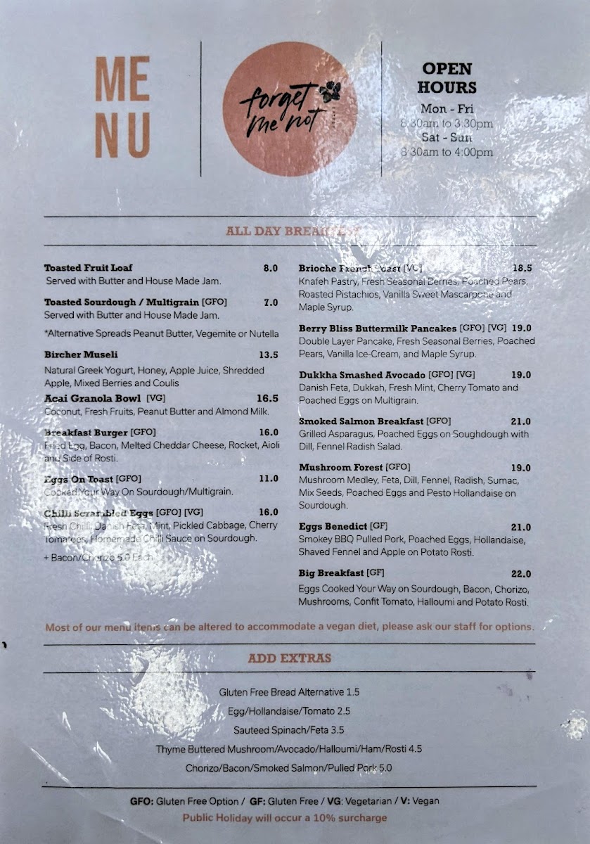 Welcome to Forget Me Not Eatery, a delightful cafe nestled in Greenvale, VIC. This charming spot is known for its fresh, delectable menu items, making it a perfect destination for families and friends alike.